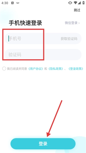 4、最后填入我们需要注册的手机号以及验证码,完成这些操作后点击【登录】按钮即可。