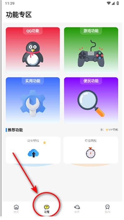 3、可以在功能区域里面看看有没有你自己需要的功能;