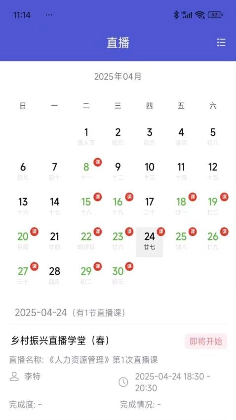 2. 通过查看直播日历,了解课程直播时间,进而能够准时在线观看直播进行学习。