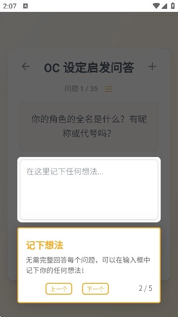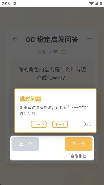 5、如果暂时没有想法,可以点"下一个"跳过此问题