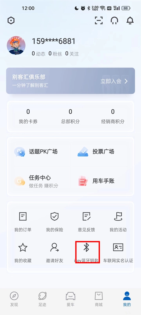 3、然后进入到我的页面之后,在下面最下方一栏找到“ikey蓝牙钥匙”进入;