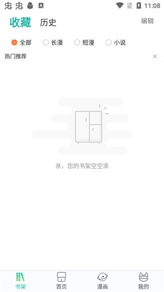 3、在书架内会显示你收藏过的长漫、短漫以及小说;
