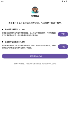 3、需要下载相关的语音模型,点击一键下载。