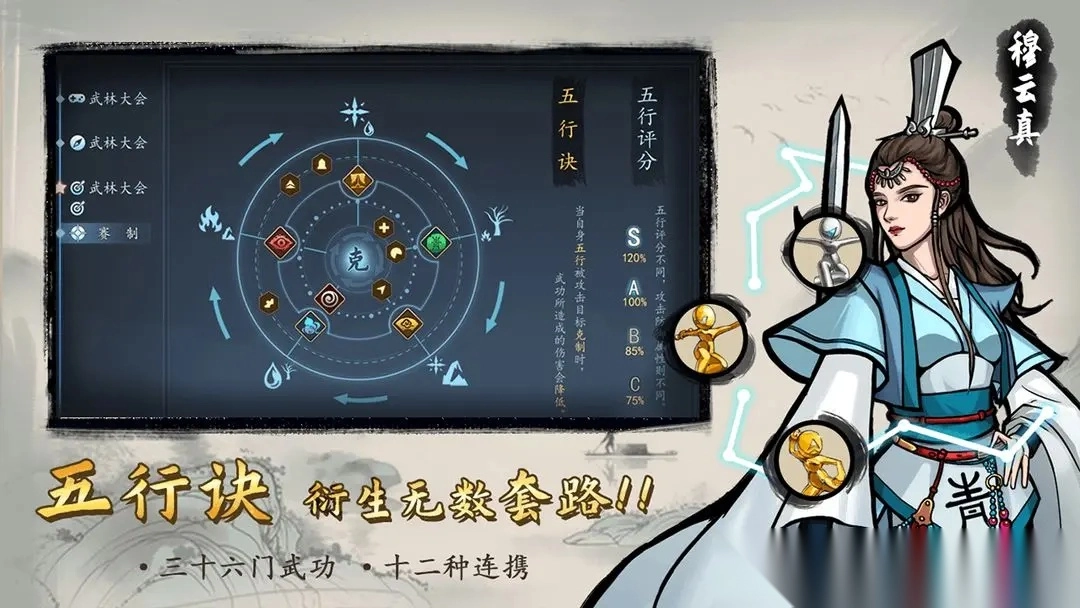 2、武学种类分成六类套路,适合布阵时灵活运用,能打出不同的效果和变化。