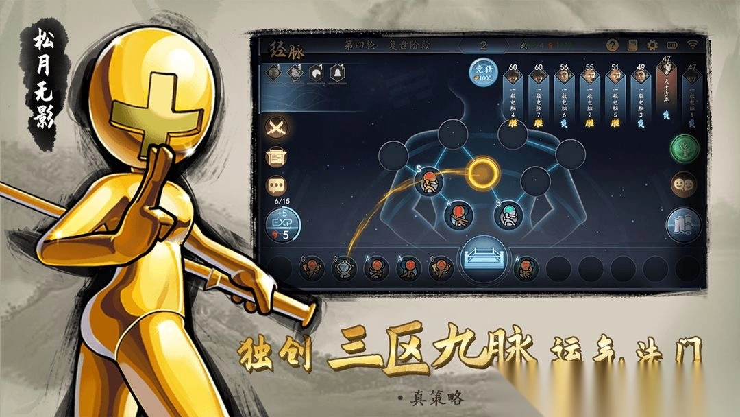 2、经脉系统设计巧妙,升级解锁丹田与周天位置,不同部署决定战局走向。
