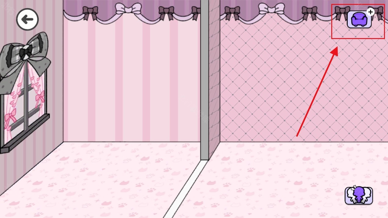 4、进入房屋后空空如也,点击右上角的【沙发】图标,可以打开家具栏目