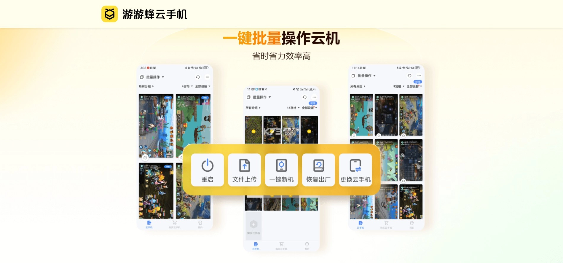 支持云手机设备多开,多个游戏账号皆可实现挂机,并能统一管理使用。