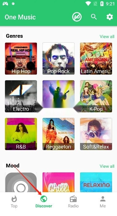5、点击下方的“discover”,你会发现此处所有歌曲均依据不同流派和地域进行了分类。