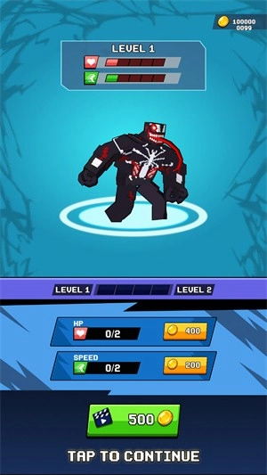 3. 收集能量与金币,能量能助你使毒液怪物变身为巨型模式,金币则可用于解锁全新角色与场景。