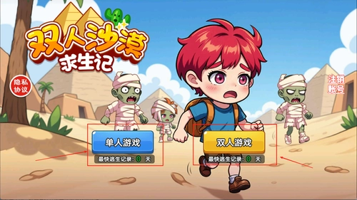 1. 开启游戏后,可选择双人模式或单人模式进入沙漠地图。每张地图的资源分布与生存挑战各不相同,玩法丰富多样,十分考验玩家间的配合能力。