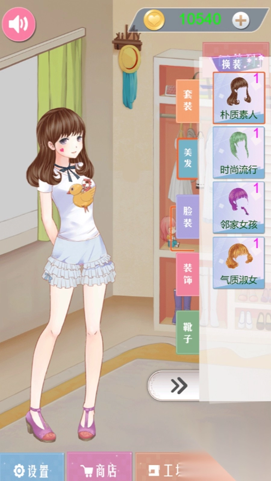 1. 走进商店,按照拥有的金币数量挑选美发、脸装等各种装扮部件,以此让角色外观更加丰富多样。