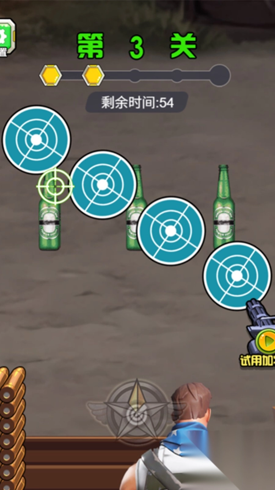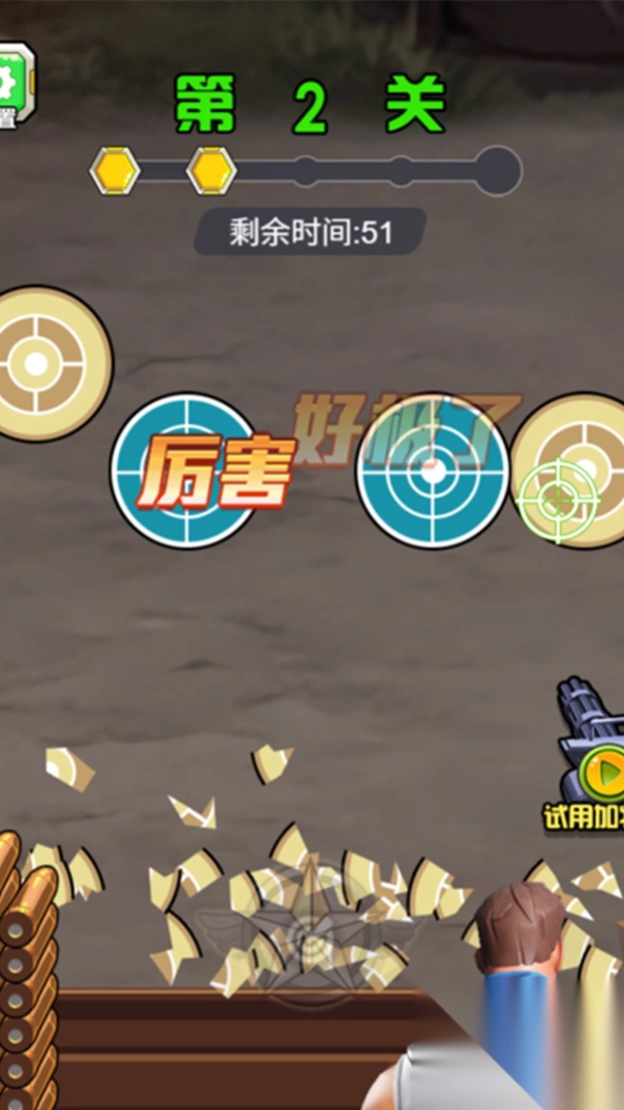 2、当面临多目标关卡时,优先攻打威胁较大且得分较高的目标,要合理规划子弹的使用,防止出现浪费的情况。