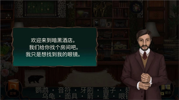 4、上一关通关后进入第二关,酒店管理员会给玩家提示需要找到哪些东西;