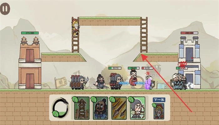 2、在牌库选武将,编排出战阵容,进入关卡,操控角色策略战斗。