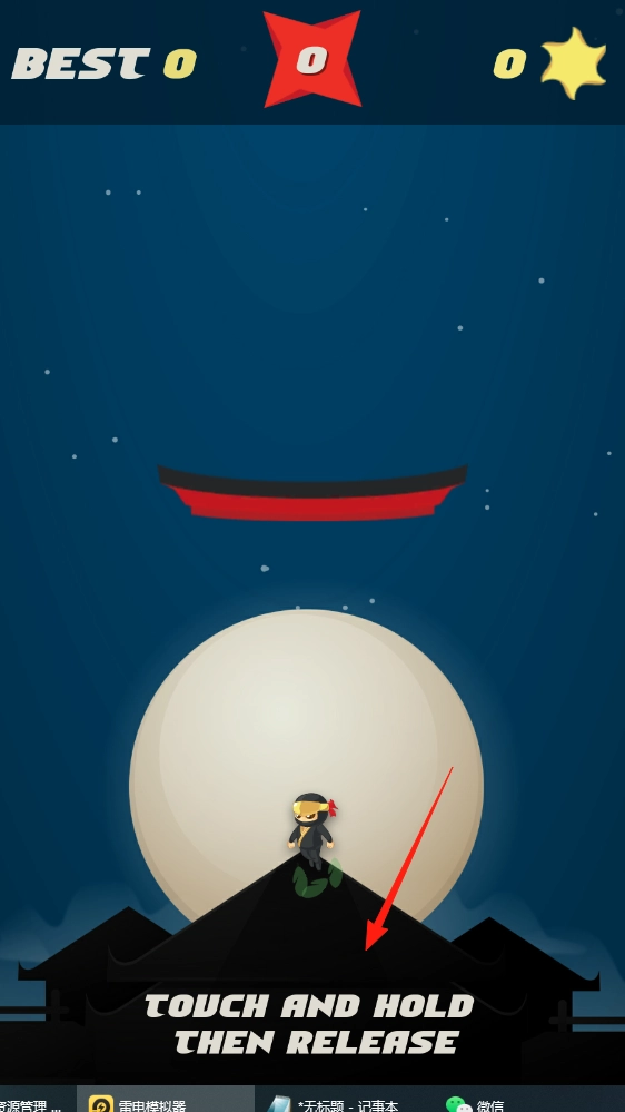 1、长按屏幕蓄力,松开让忍者跳跃,越过障碍,获取积分推进关卡。