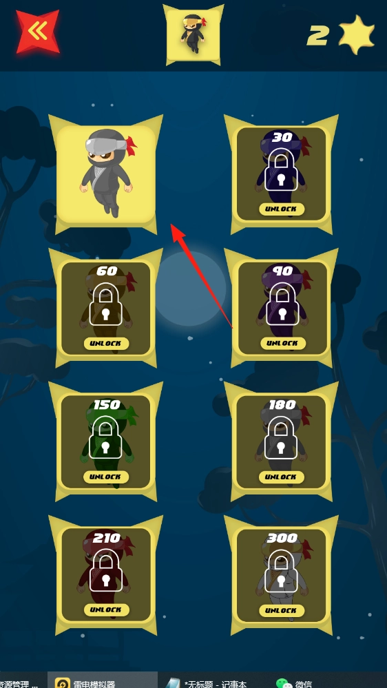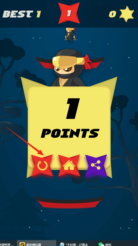 2、完成关卡后,可点重玩或回主页,积累积分,解锁新忍者角色。