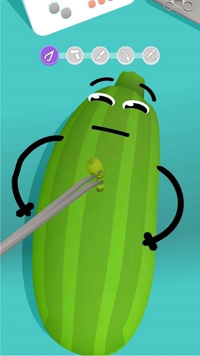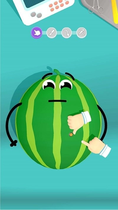 1、玩家通过简单的点击和拖动操作,使用各种工具对水果进行修整和装饰;