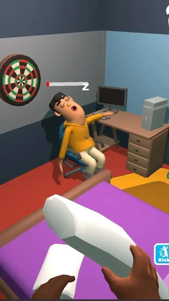 1. 核心目标:玩家要运用各类方法叫醒一名熟睡之人。这些方法包含但不限于踢他、朝他扔东西、使其从床上掉落等。