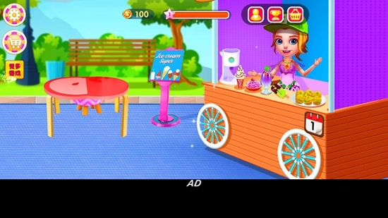 3. 顾客互动体系:顾客的需求与喜好各不相同,玩家要依据顾客的表情及给出的提示,供应恰当的冰淇淋,以提高顾客的满意度。