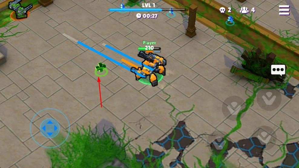 3、在场景里,会出现绿色十字之类的道具。当你靠近这些道具并获取后,能够补充自身状态,这有助于你在对战中维持优势,从而应对更多的敌人。