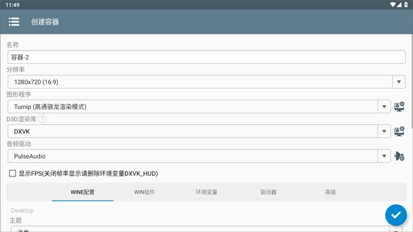 2. 挑选屏幕分辨率,并设置显存大小(若手机配置较低,建议将显存和分辨率设置得小一些)