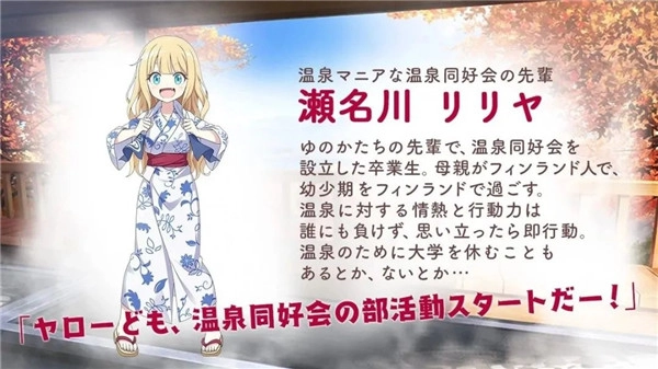 濑名川莉莉亚,乃是温泉同好会的创立者。