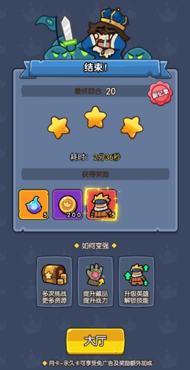 3、历经多次合成,打造更为强力的英雄,进而击败关卡内的全部怪物。