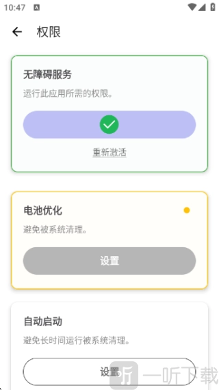 安装完成首次打开时,系统会提示开启无障碍服务权限,点击“设置”即可跳转至系统页面。