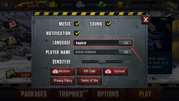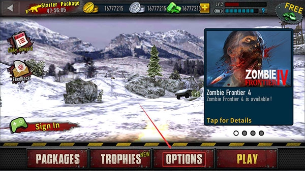 1、需先完成游戏开头的新手教程,这是设置中文的前提条件。完成后返回主界面,点击下方的OPTIONS按钮。