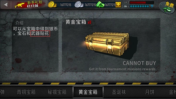 在《僵尸前线3》游戏里,绝大多数枪械都配有三种皮肤。其一为原皮肤,购买就能解锁;其二需将枪身升级到4级方可解锁;至于第三种皮肤,获取方式较为特殊,基本上所有枪械均是如此。就拿加特林机枪来说: