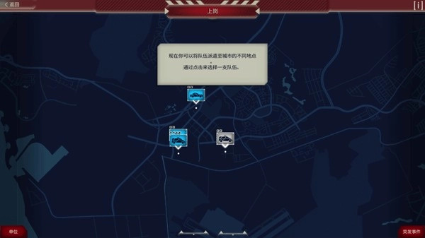 2、接下来,点击左下角的单位,把队伍派遣到城市的不同地方,可通过双击或者点击的方式来移动队伍。