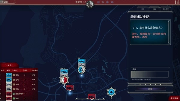 1. 本游戏运用动态事件系统,每日会随机产生20至30个报警电话,以此考验您的多任务处理能力。
