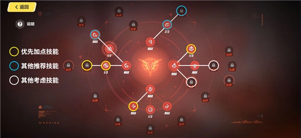 1、在前期,可考虑优先选择点出以下技能