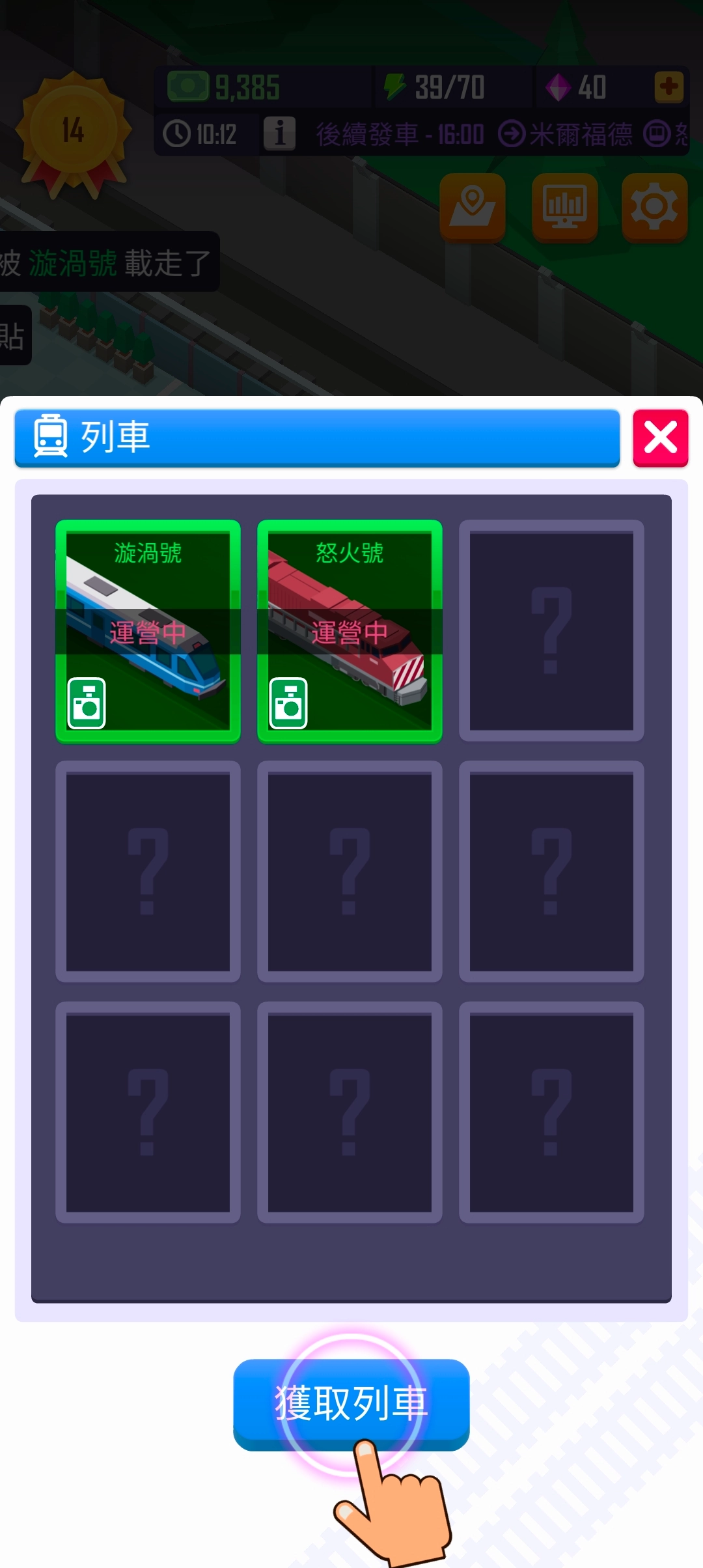 开启更多路线探索,收集各式各样的火车,并对它们进行升级!随着路线的延长以及火车的升级,火车票价格也会相应提升。鉴于乘客的出行需求,该如何规划出合理的时刻表……?这一切都由你来决定!制定出最适宜的时间表,摇身一变成为铁路大亨!