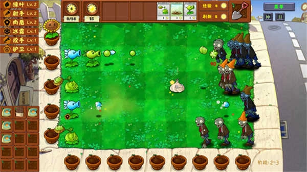 - 觉得卡牌不给力?别担心!只需轻点“刷新”,消耗2点阳光,就能换上更强力的植物;要是点击“经验”,消耗4点阳光,还能升级植物,让它们战斗力飙升,对僵尸的打击更猛烈!