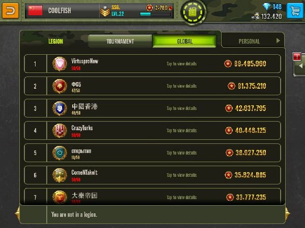旁边那个红色感叹号代表着聊天信息,通过它能与外国玩家一同聊天,只是内容不太明白。这里有两种聊天频道,一个是世界频道,另一个是军团频道。要是想加入军团,先在世界频道里点击邀请人的国旗,接着点击进入,届时会出现团名,申请加入就好。加入军团后,方可进行军团聊天。