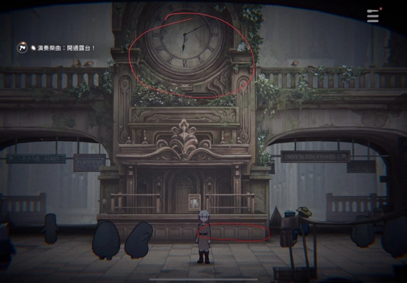 点击那个钟,会掉落一张Lycoris的Easy谱。接着,当操作艾可走到被圈起来的木板其中一块跟前时,会弹出操作提示。点击该提示,艾可会踢几下,随后就能获取一张Through Mist and Fog的Normal谱。
