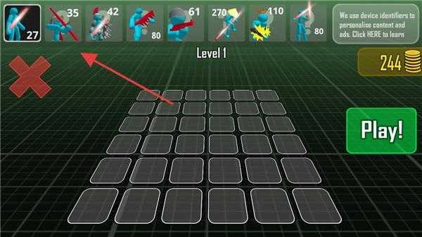 2、在关卡准备界面中,点击指定位置部署己方蓝色小人,合理安排战斗单位布局。