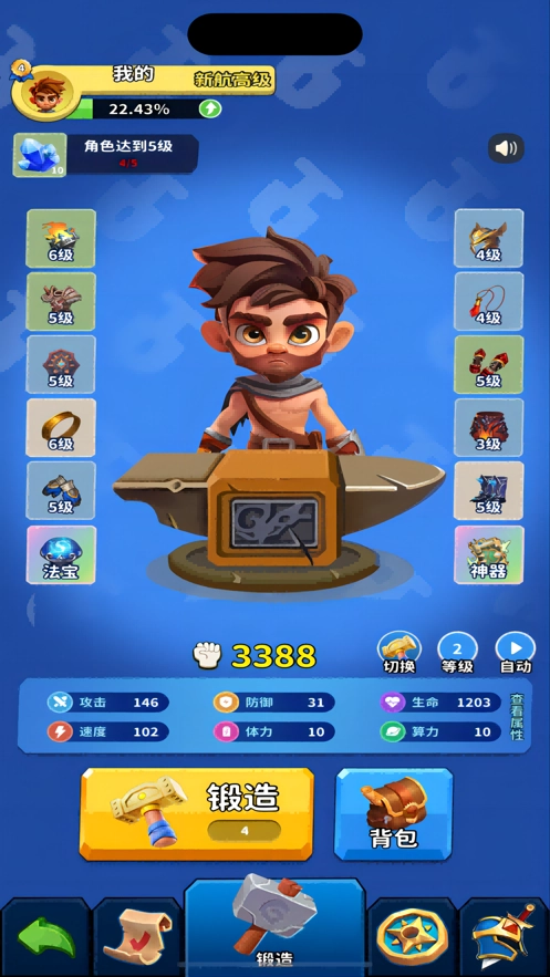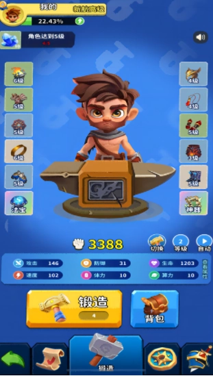 2、轻点底部的“锻造”选项,以此提升自身等级。
