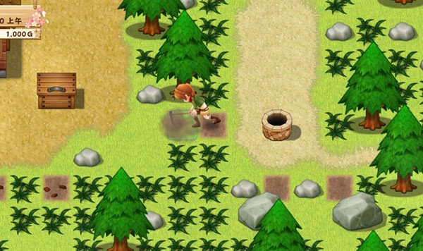 2、来清理你的农场吧!充分利用一天内有限的体力,把那些碎石头和杂草都清理得干干净净。