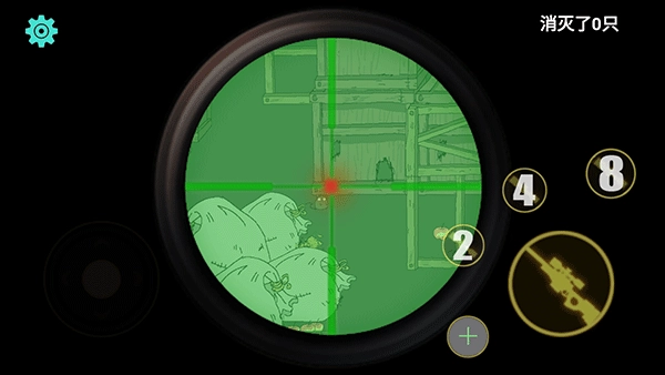 3、点击右侧的2、4、8,能够放大倍镜,让瞄准老鼠更为便捷。