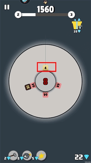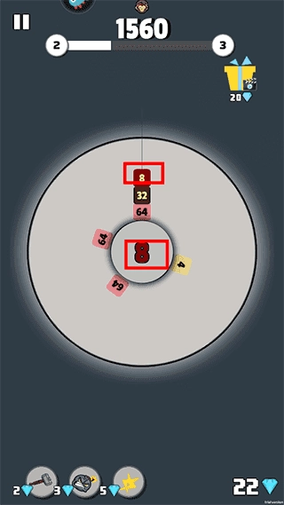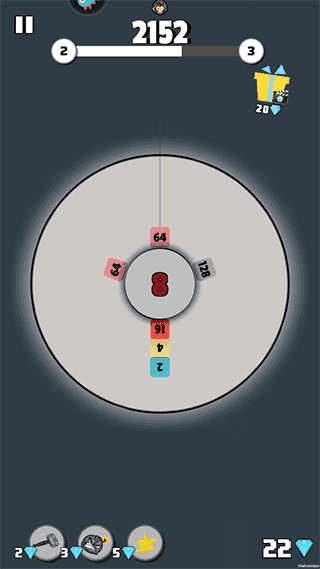 1、游戏操作简便,玩家仅需让相同大小的数字相互碰撞,碰撞后数字就会翻倍。