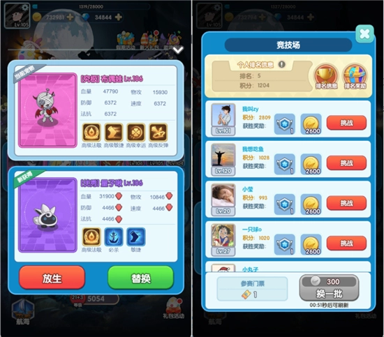 在竞技场中,分别设有日排行榜与周排行榜。训练家能够自主选择对手并发起挑战,一旦挑战成功,就可以从对手那里赢取排行榜积分,与此同时,还会收获金币以及秘银魔章作为奖励。值得注意的是,在排行榜上的名次越靠前,每日结算和每周结算所获得的奖励也就越发丰厚!