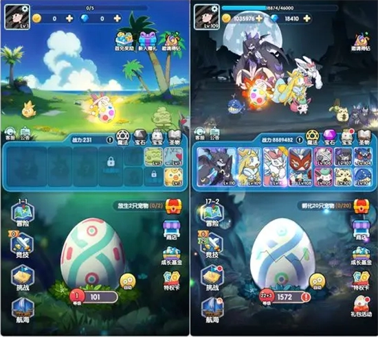 ②竞技场获胜:在开蛋时,不仅能得到金币,还会随机掉落竞技场挑战券。有了挑战券,就能与其他训练家展开PK!获胜后可收获金币与积分奖励,随着积分不断提升,你的对手会愈发强大,金币奖励也会更为丰厚!正所谓“风浪越大,鱼越贵”,大概就是这个意思啦!