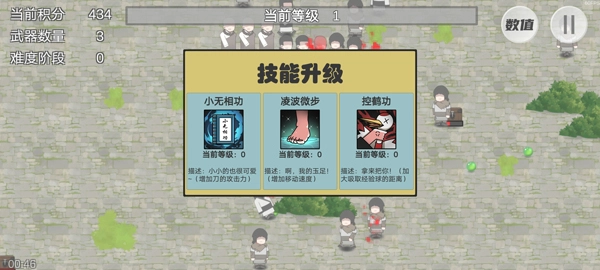 3、多种不同的武功等你来选择升级,丰富多样的组合将为你带来最富趣味的割草体验。