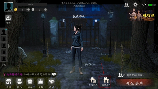 1. 于游戏开始界面,点击右下角的创建房间按钮。