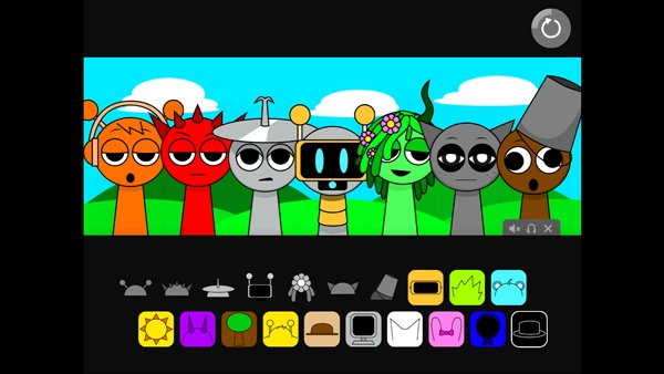 1. 开启节奏盒子Sprunki的最新版本,进入游戏界面后,轻点右下角的黑色帽子,接着为角色戴上该帽子以进入模组。