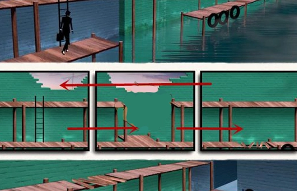 进入第四章后,玩家能明显感觉比之前轻松不少,只需把位置摆放好就行。这部分内容包含两个方面,首先是许久未见的简单关卡,将下方画面的位置进行调换即可;另外则是高楼追逐环节,此环节需要多次调整,相对复杂一些。