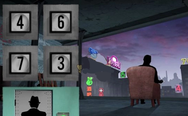 在这一章节里,场景中有一部电梯。当玩家踏上电梯后,会发现一个需要解除的密码锁。而解开密码锁的线索,藏在右侧背景的霓虹灯处。玩家能够依据霓虹灯数字的闪烁顺序,从而判断出密码是4673 。