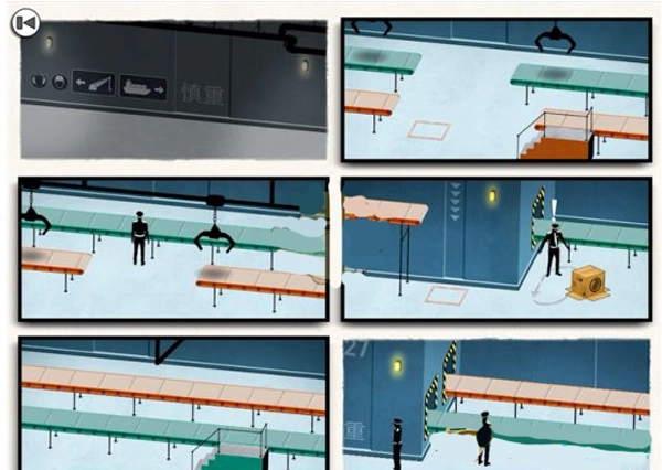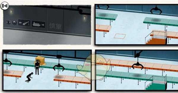 此章节难度颇高,玩家得借助纸箱来掩护自身,顺着传送带完成通关。过程中需多次对画面进行调整,关键之处在于使箱子踏上红色传送带,人物踏上绿色传送带。如此一来,箱子会在画面五的位置落下,而人物则会从警察背后的绿色传送带现身。